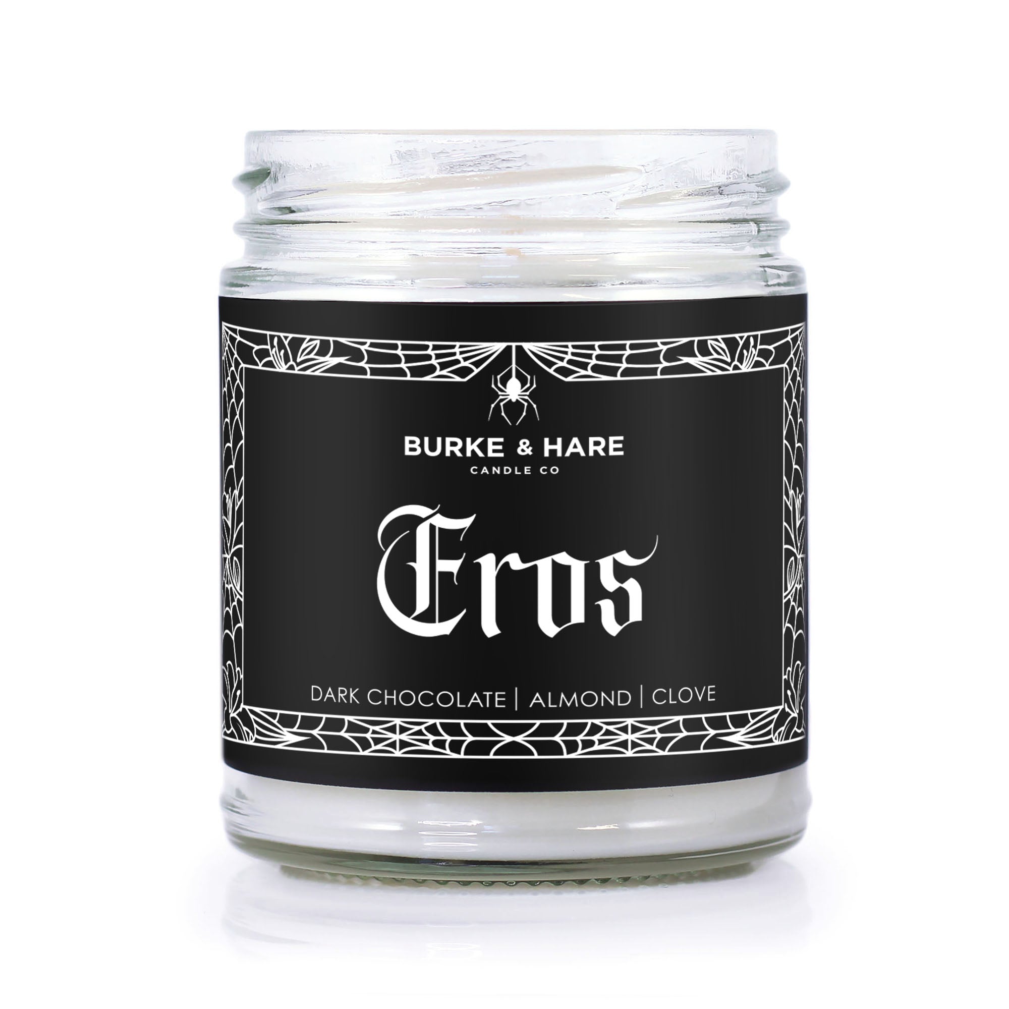 Eros : Eros is temptation in wax form. A darkly romantic blend of rich chocolate and smoldering spice, made for the Valentine who prefers black lace over roses. Notes : Cocoa Powder | Clove | Fudge | Almond